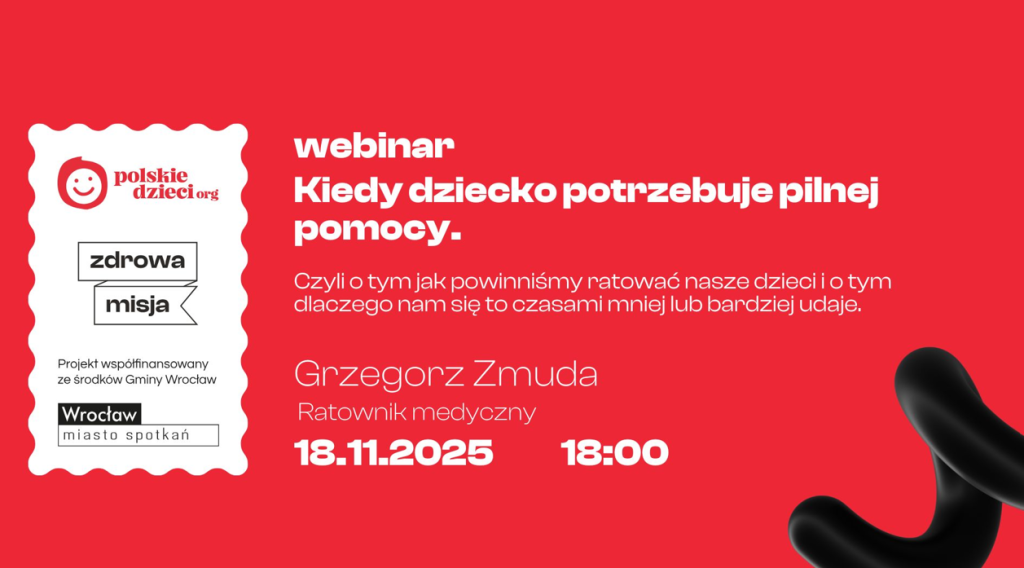 Zachęcamy wszystkich Państwa do udziału w webinarium w ramach ,,Zdrowej Misji 2025 r.", pt. "Kiedy dziecko potrzebuje pilnej pomocy".